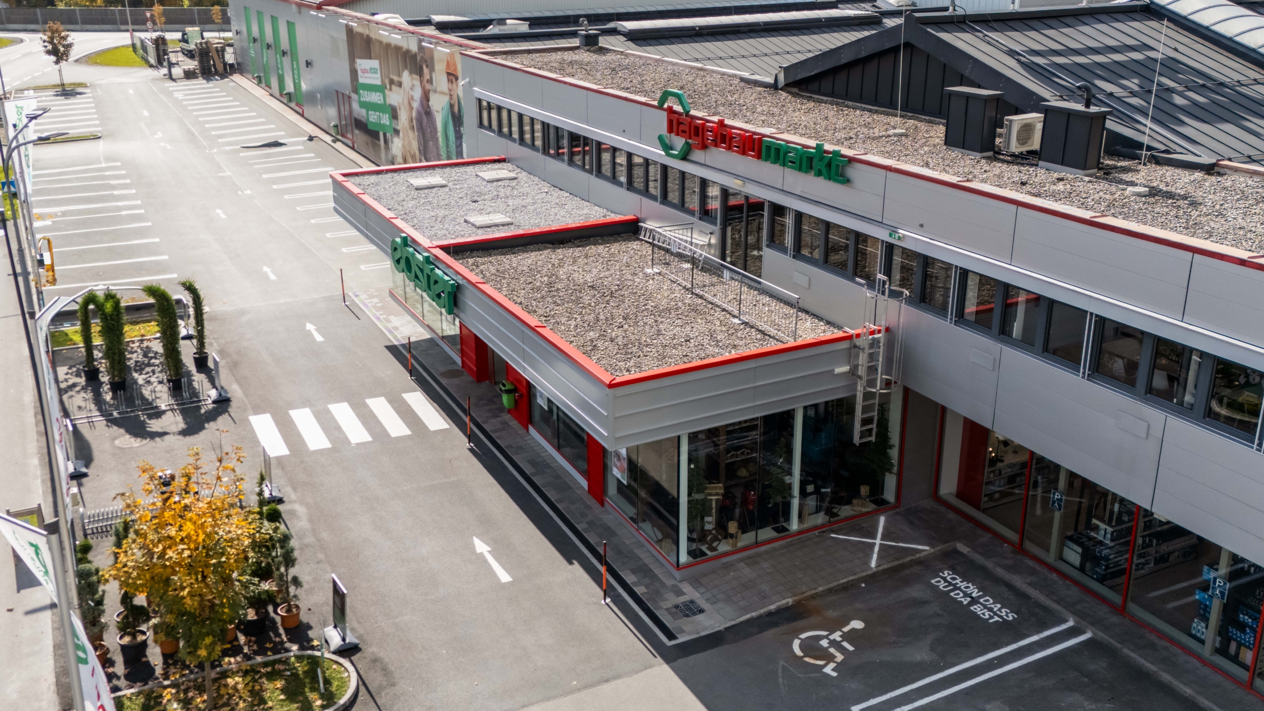 Baumarkt und Gartencenter Ebster GmbH – Zubau Neugestaltung Eingangsbereich und Außenanlage im Nordosten